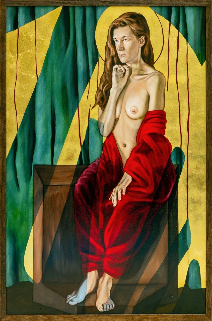 100x65, Oil, acrylic and goldleaf on panel, 2020